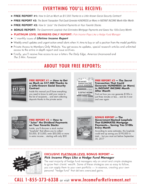 To the left is the front page of the reply. This is the order form. It gives the reader 3 different package choices and highlights all of the benefits each package includes and ultimately how to order.
